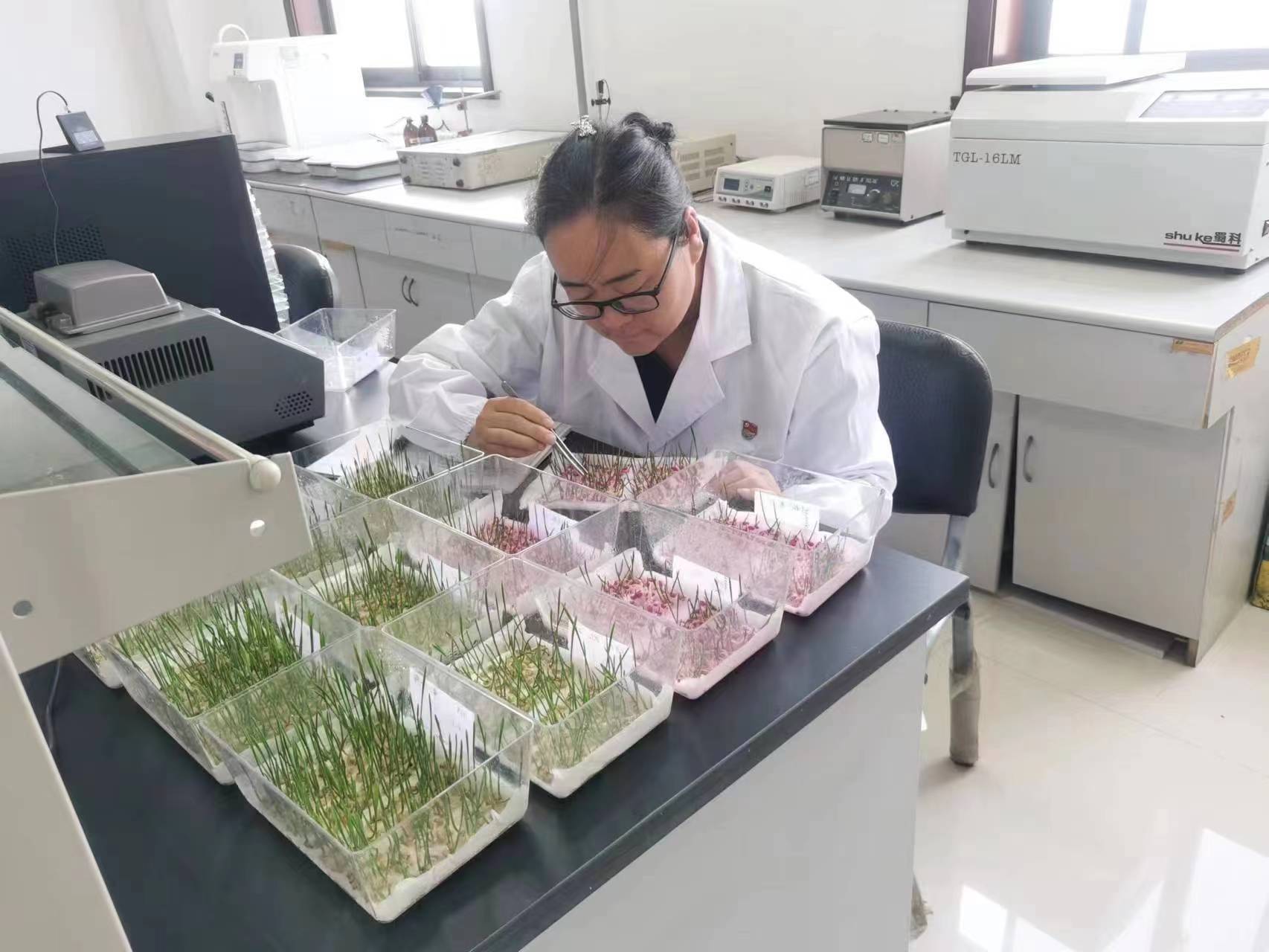 張瑞華在觀察種苗長(zhǎng)勢(shì)。